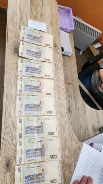 "Після цього вже діючи під контролем правоохоронних органів, заявник прибув 13 березня до одного з ТСЦ МВС України, який знаходиться у місті Вінниця та в ході спілкування з фігурантом повторив своє бажання перереєструвати транспортний засіб, однак фігурант у свою чергу знов висловив вимогу надання йому неправомірної вигоди, та створюючи уявлення про законність операції зазначив, що грошові кошти в якості неправомірної вигоди необхідно передати через касу одного з банків. Прибувши до каси, заявник передав грошові кошти касиру, а та у свою чергу, будучи раніше попереджена фігурантом про необхідність їх повернення останньому, вказані грошові кошти на офіційний банківський рахунок не внесла, а мала намір передати фігуранту. Одразу після одержання неправомірної вигоди у сумі 4 000 гривень, фігуранта затримано на місця вчинення кримінального правопорушення, а грошові кошти одержанні в якості неправомірної вигоди виявлено та вилучено", – йдеться у повідомленні.