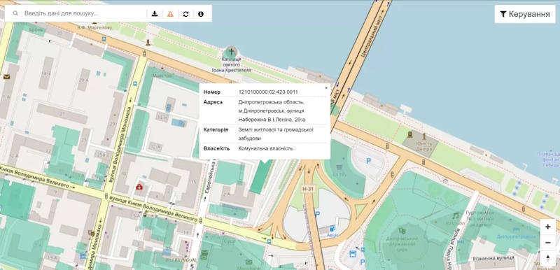 - Знайти на карті потрібну ділянку та натиснути на неї.