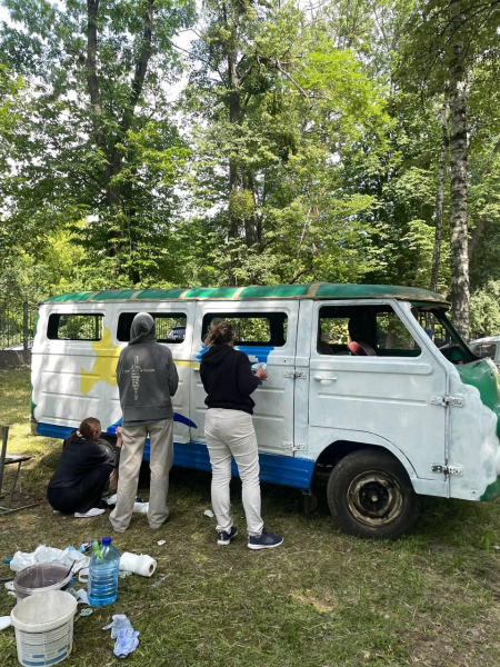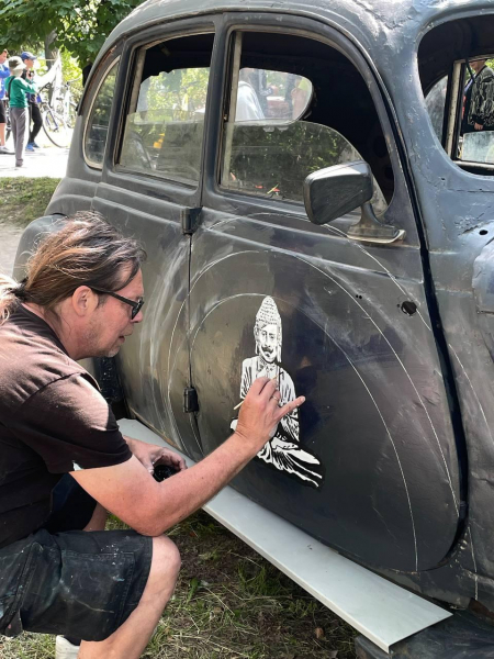 На локації ArtDrive – шестеро вінницьких художників розмалювали автівки експозиції «Ретро по-вінницьки». Біля митців проводили майстерклас з розпису шопера «РетроBag». Навчала цьому представниця крамниці byVi Леся Зіаннурова.