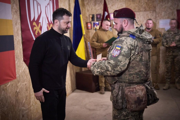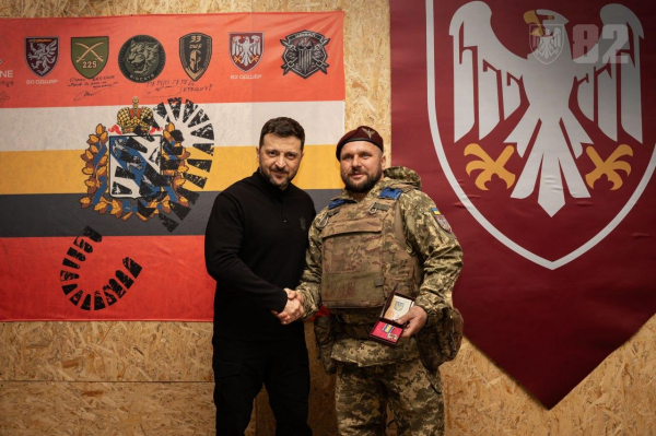 "Глава держави зустрічався з військовослужбовцями 36-ї окремої бригади морської піхоти імені контрадмірала Михайла Білинського та 82-ї окремої десантно-штурмової Буковинської бригади, які беруть участь у Курській операції. Подякував воїнам за захист та відзначив їх державними нагородами. Серед нагороджених оборонців був і наш земляк Мегеден Дмитро Дмитрович, житель Вапнярської громади", – йдеться у повідомленні.